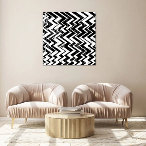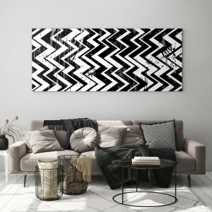 Obraz na szkle - Czarno-biały wzór w zygzaki z artystycznymi przetarciami - 70x100cm - Zyg-białe, zag-czarne - Nowoczesna dekoracja ścienna do salonu i sypialni ARTTOR