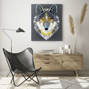 Obraz na szkle - Geometryczny wizerunek wilka na szarym tle - 70x100cm - O wilku mowa - Nowoczesna dekoracja ścienna do salonu i sypialni ARTTOR