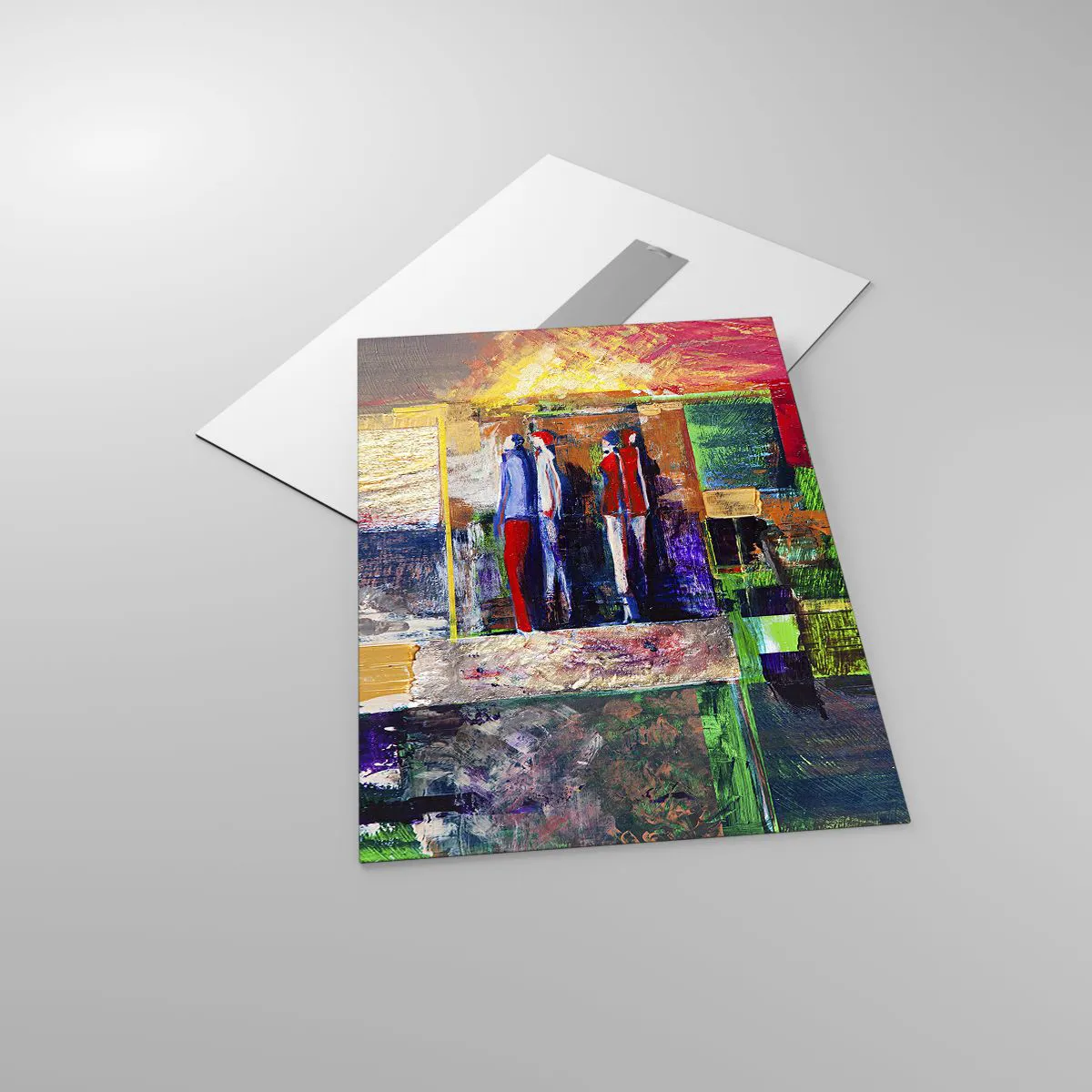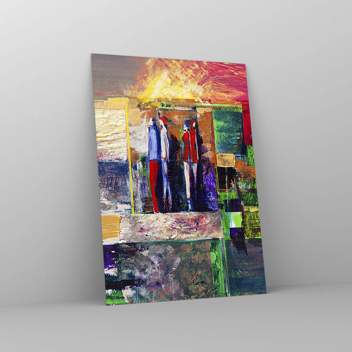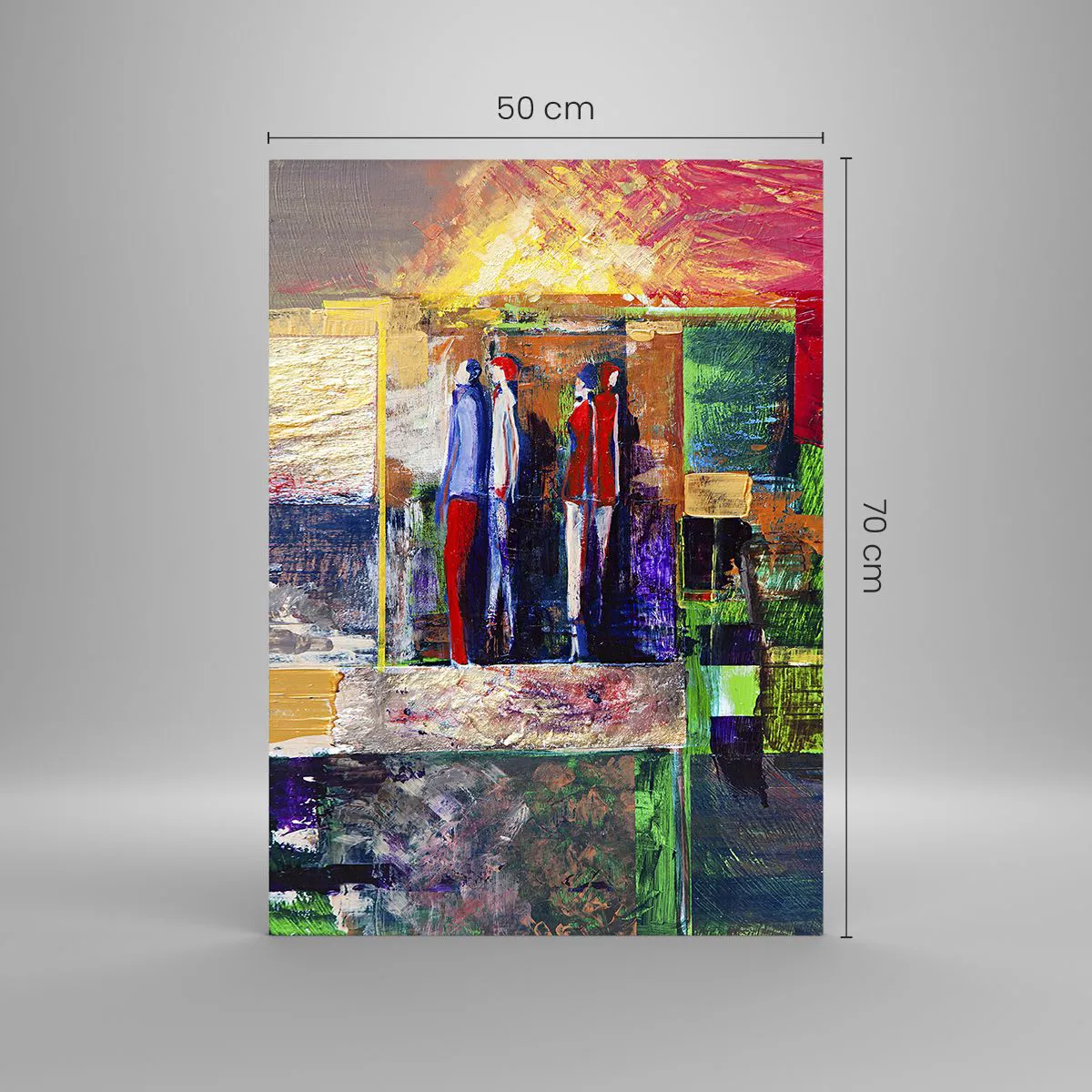 Obraz na szkle - Abstrakcyjna kompozycja z postaciami i intensywnymi kolorami - 50x70cm - Relacje i emocje - Nowoczesna dekoracja ścienna do salonu, kuchni i sypialni ARTTOR