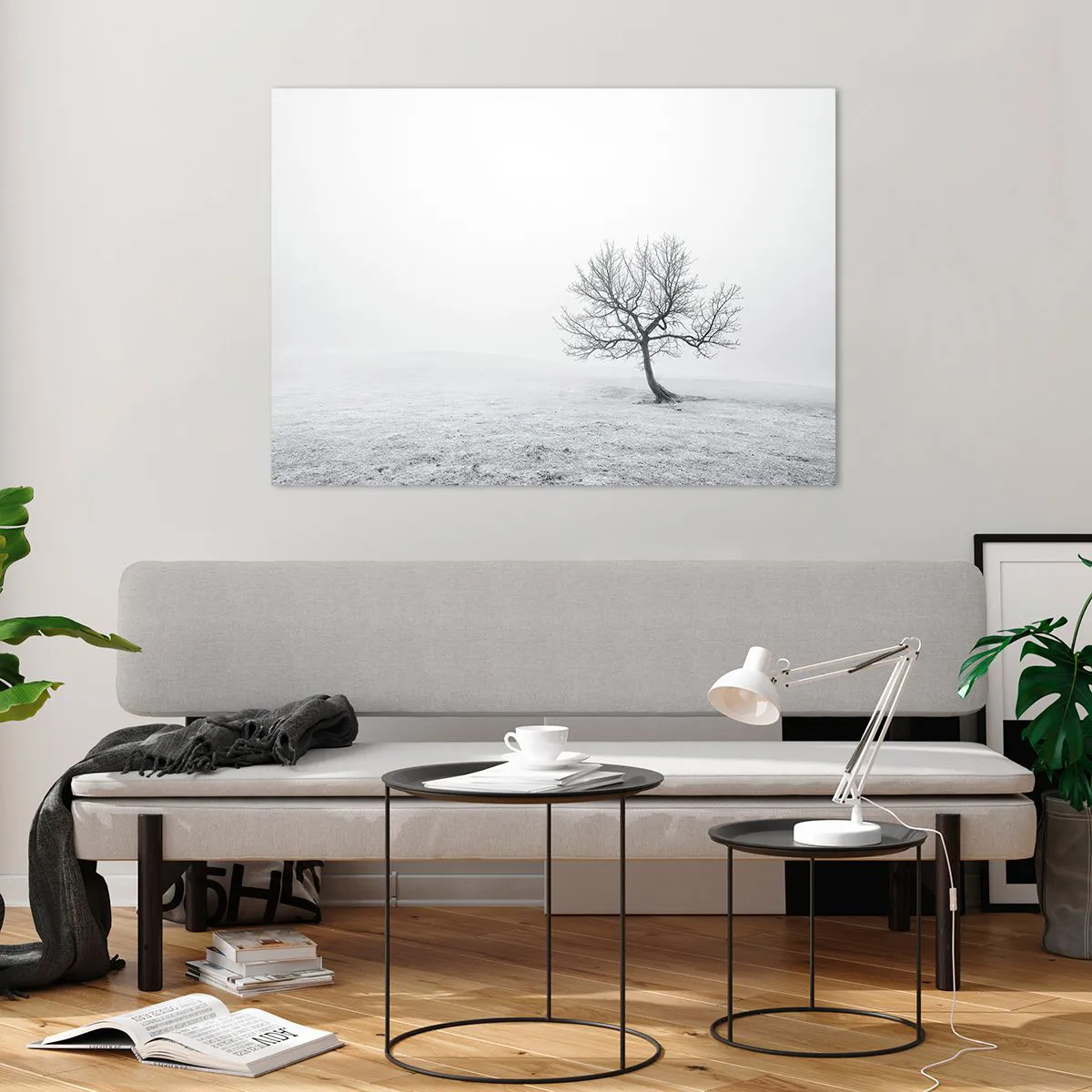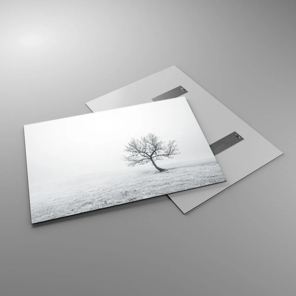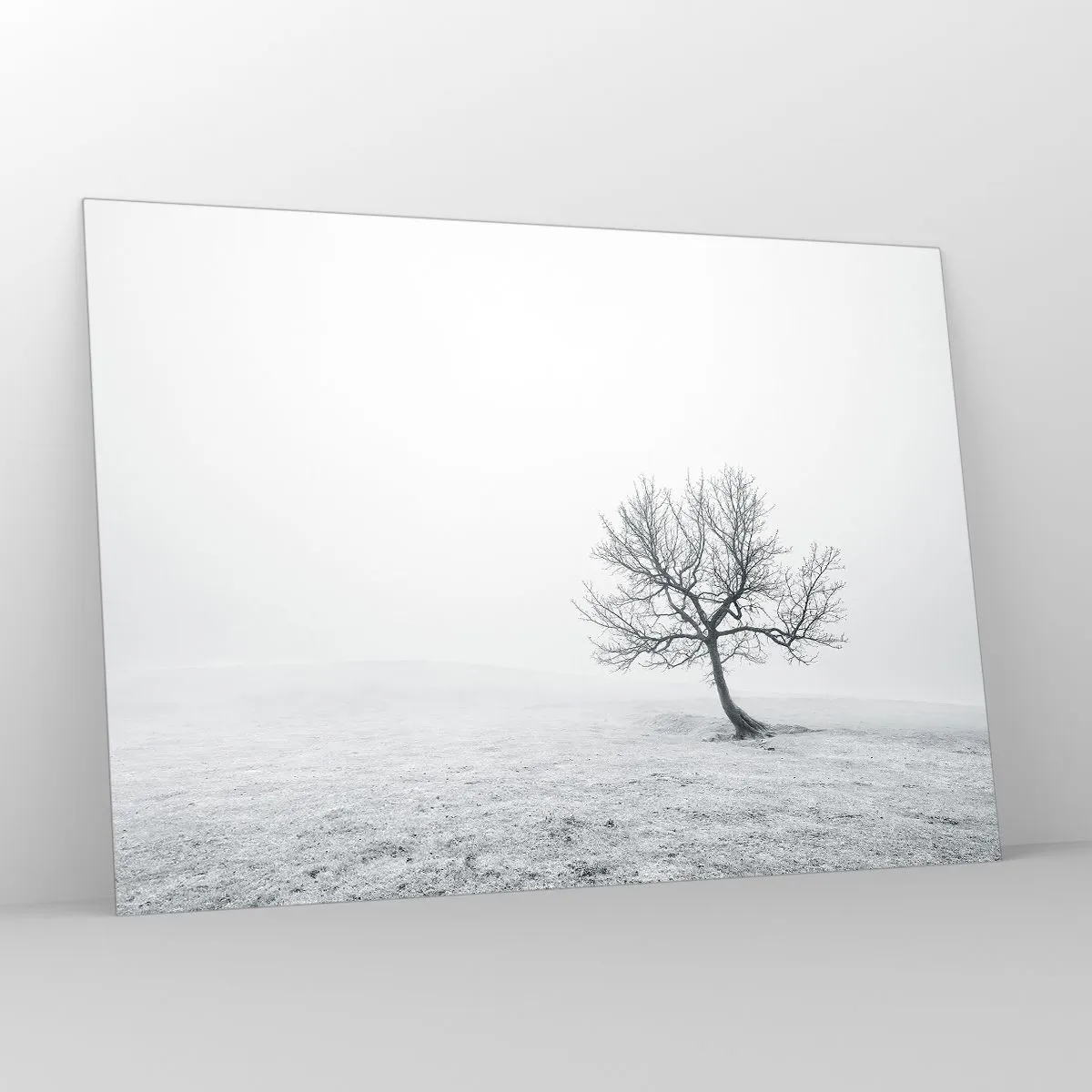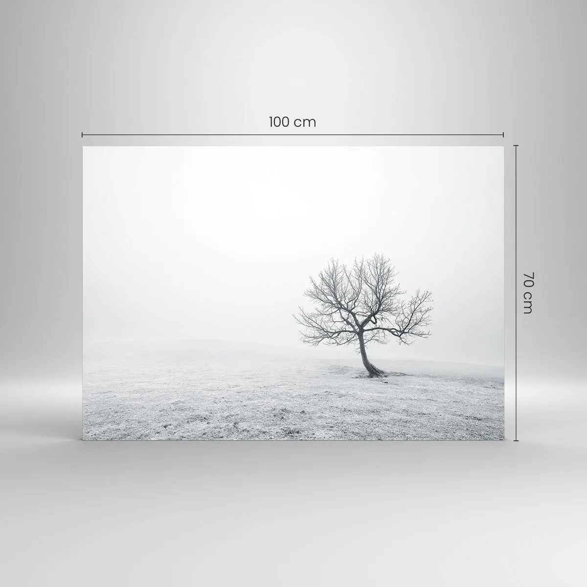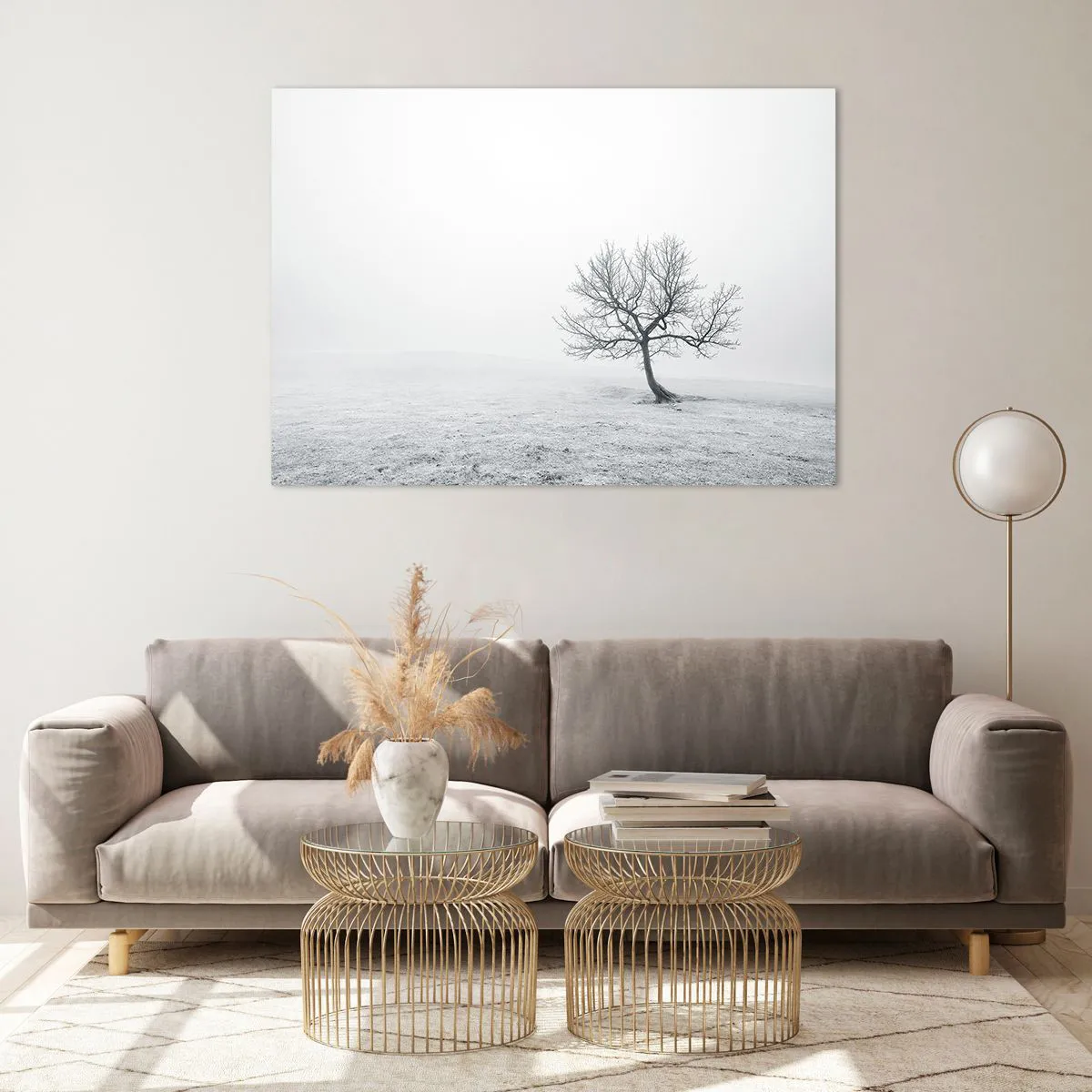 Obraz na szkle - Samotne drzewo na tle mgły w monochromatycznej kompozycji - 100x70cm - Przeciw nicości - Nowoczesna dekoracja ścienna do salonu, kuchni i sypialni ARTTOR