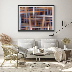 Plakat w czarnej ramie - Geometryczne linie w ciepłych i chłodnych barwach - 50x70cm - Utkane ze światła - Nowoczesna dekoracja ścienna do salonu i sypialni ARTTOR