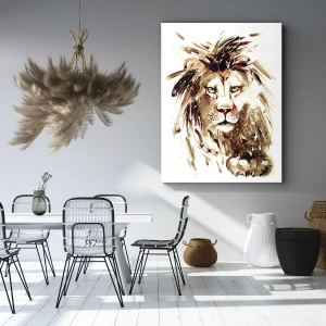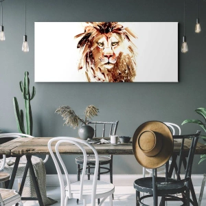 Obraz na płótnie - Portret lwa w stylu akwarelowym z intensywnymi detalami - 160x50cm - Siła i godność - Nowoczesna dekoracja ścienna do salonu i sypialni ARTTOR