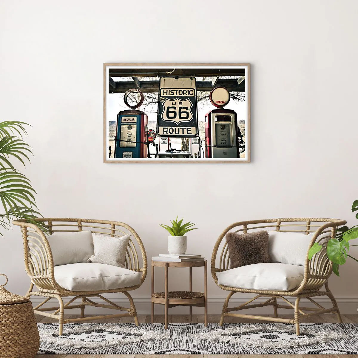 Plakat w ramie jasny dąb - Amerykańska retro podróż - 91x61 cm
