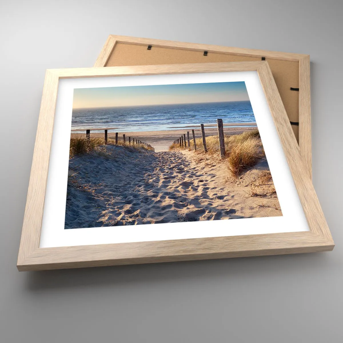 Plakat w ramie jasny dąb - Morza szum, ptaków śpiew, dzika plaża pośród traw… - 30x30 cm