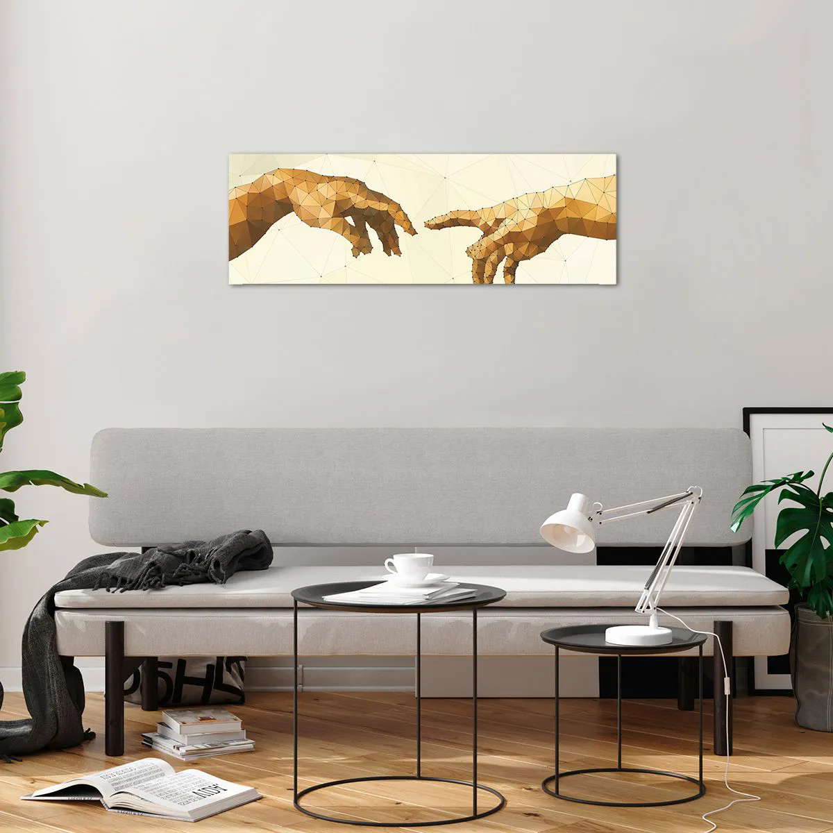 Obraz na szkle wykonany jest ze szkła o grubości 4mm. Krawędzie szkła posiadają matowy szlif trapezowy. Obraz bezpieczny w użytkowaniu i gotowy do powieszenia – posiada metalowe zawieszki zamocowane do tylnej części obrazu oraz piankowe dystanse regulujące równomierny odstęp obrazu od ściany.