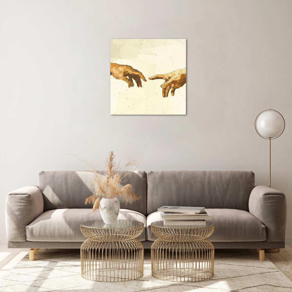 Obraz na szkle wykonany jest ze szkła o grubości 4mm. Krawędzie szkła posiadają matowy szlif trapezowy. Obraz bezpieczny w użytkowaniu i gotowy do powieszenia – posiada metalowe zawieszki zamocowane do tylnej części obrazu oraz piankowe dystanse regulujące równomierny odstęp obrazu od ściany.