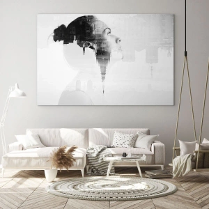 Obraz na szkle - Sylwetka kobiety z elementami architektury w tle - 50x70cm - Po dwóch stronach szyby - Nowoczesna dekoracja ścienna do salonu, kuchni i sypialni ARTTOR