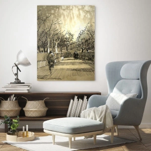 Obraz na szkle wykonany jest ze szkła o grubości 4mm. Krawędzie szkła posiadają matowy szlif trapezowy. Obraz bezpieczny w użytkowaniu i gotowy do powieszenia – posiada metalowe zawieszki zamocowane do tylnej części obrazu oraz piankowe dystanse regulujące równomierny odstęp obrazu od ściany.