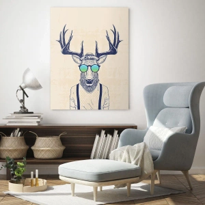 Obraz na szkle - Elegancki jeleń w okularach przeciwsłonecznych na jasnym tle - 50x70cm - A kogo się spodziewałeś? - Nowoczesna dekoracja ścienna do salonu, kuchni i sypialni ARTTOR
