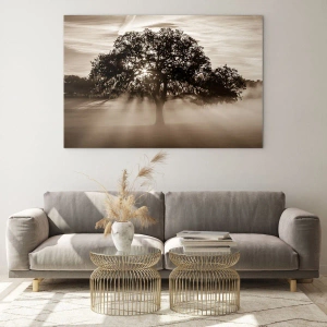 Obraz na szkle - Promienie słońca przebijające przez samotne drzewo - 80x120cm - Drzewo wiadomości samego dobrego - Nowoczesna dekoracja ścienna do salonu i sypialni ARTTOR