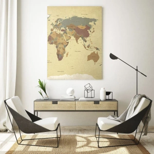 Obraz na szkle - Mapa świata w odcieniach beżu i brązu na tle w stylu vintage - 50x70cm - Dla ciebie - cały świat - Nowoczesna dekoracja ścienna do salonu, kuchni i sypialni ARTTOR
