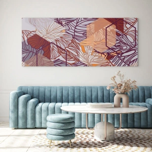 Obraz na szkle - Graficzne liście na tle geometrycznych kształtów - 50x70cm - Związek niemozliwy geometrii i natury - Nowoczesna dekoracja ścienna do salonu, kuchni i sypialni ARTTOR