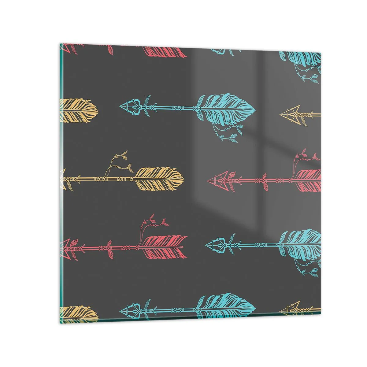 Obraz na szkle wykonany jest ze szkła o grubości 4mm. Krawędzie szkła posiadają matowy szlif trapezowy. Obraz bezpieczny w użytkowaniu i gotowy do powieszenia – posiada metalowe zawieszki zamocowane do tylnej części obrazu oraz piankowe dystanse regulujące równomierny odstęp obrazu od ściany.