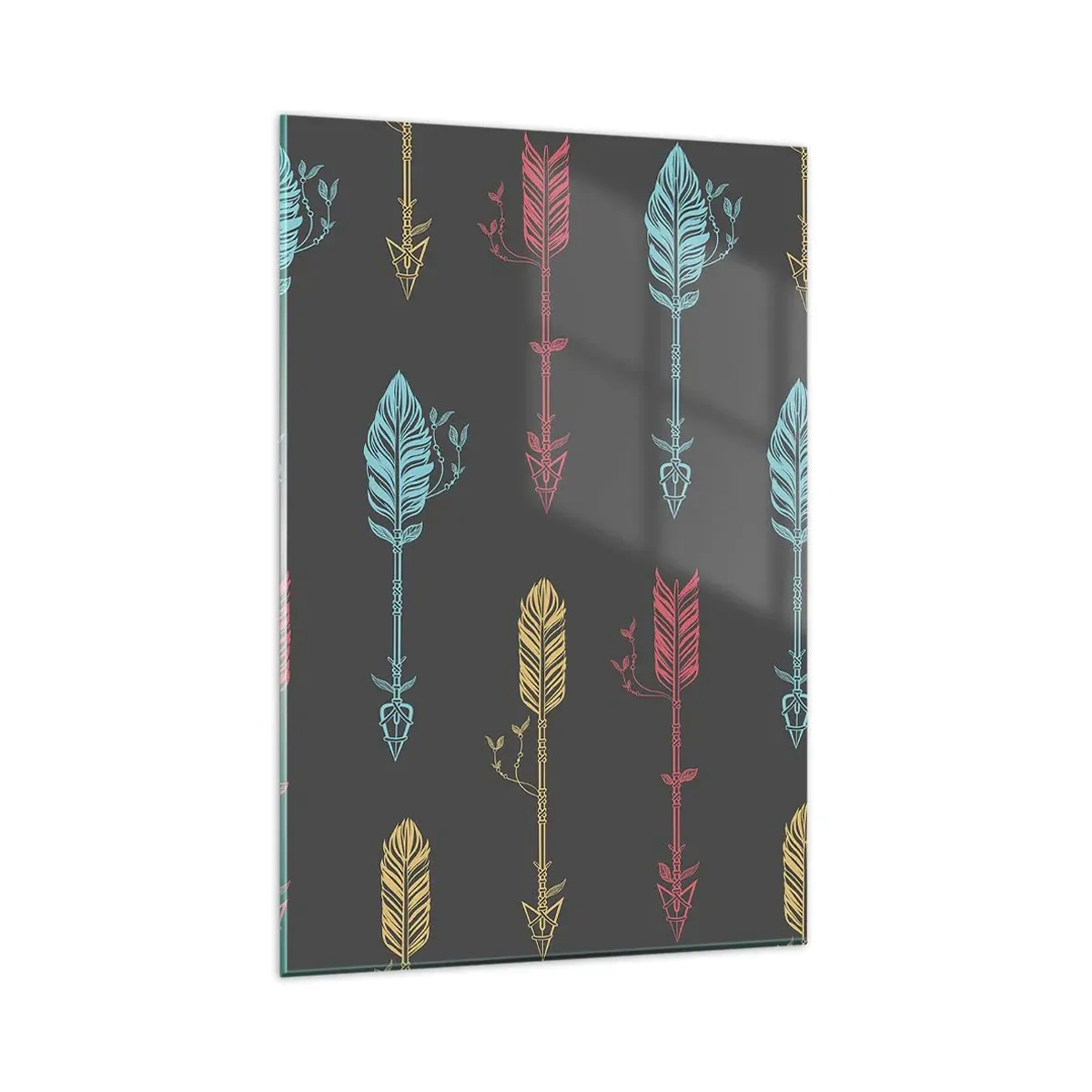 Obraz na szkle - Stylizowany wzór strzał w pastelowych kolorach na ciemnym tle - 80x120cm - W ordynku - Nowoczesna dekoracja ścienna do salonu i sypialni ARTTOR