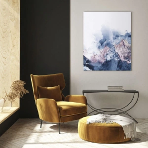 Obraz na szkle - Akwarelowe góry w pastelowych odcieniach niebieskiego i różu - 120x80cm - To są szczyty! - Nowoczesna dekoracja ścienna do salonu, kuchni i sypialni ARTTOR
