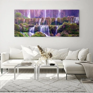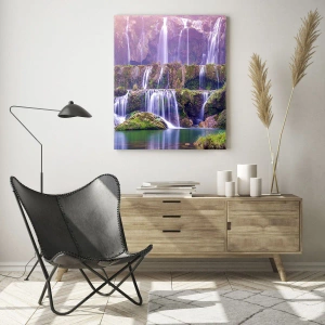Obraz na szkle - Wodospady otoczone zielenią z pastelowym oświetleniem - 80x120cm - Schody do nieba - Nowoczesna dekoracja ścienna do salonu i sypialni ARTTOR