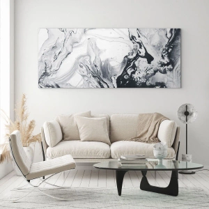 Obraz na szkle - Monochromatyczne abstrakcyjne fale w odcieniach czerni i bieli - 120x80cm - Wnętrze Ziemi - Nowoczesna dekoracja ścienna do salonu, kuchni i sypialni ARTTOR