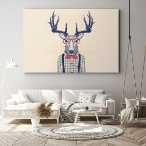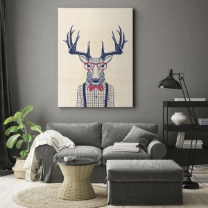 Obraz na ścianę - Stylizowana grafika jelenia w okularach i muszce - Stylizowana grafika jelenia w okularach i muszce