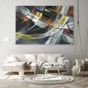 Obraz na szkle - Dynamiczna abstrakcja z kolorowymi pociągnięciami pędzla - 120x80cm - Energia ruchu - Nowoczesna dekoracja ścienna do salonu, kuchni i sypialni ARTTOR