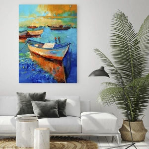 Obraz na szkle - Kolorowe łodzie zacumowane na spokojnej wodzie - 70x100cm - W południowej zatoce - Nowoczesna dekoracja ścienna do salonu i sypialni ARTTOR