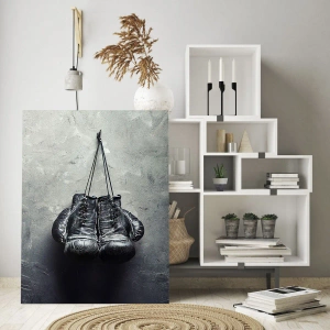 Obraz na szkle - Stare rękawice bokserskie na tle ściany - 80x120cm - Czas walki i czas pokoju - Nowoczesna dekoracja ścienna do salonu i sypialni ARTTOR