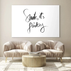 Obraz na szkle - Cytat Smile it's Friday w kaligrafii - 100x70cm - Prawdziwa radość - Nowoczesna dekoracja ścienna do salonu, kuchni i sypialni ARTTOR