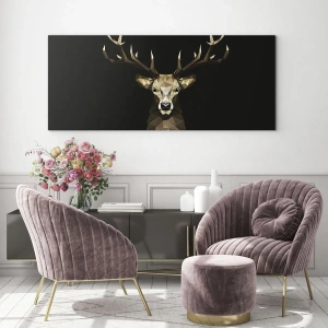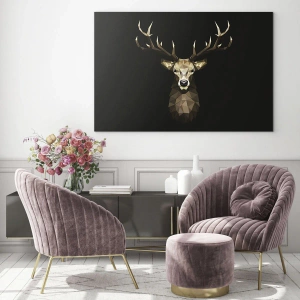 - Nowoczesny obraz z geometrycznym jeleniem na kontrastowym czarnym tle, idealny do eleganckich i minimalistycznych wnętrz.