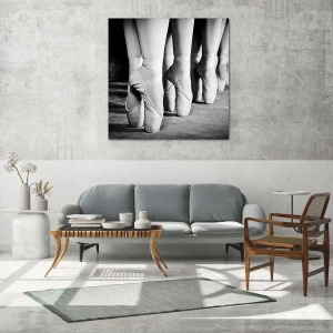 Obraz na szkle - Baletnice na pointach w czarno-białej scenerii - 50x70cm - Razem, lekko - Nowoczesna dekoracja ścienna do salonu, kuchni i sypialni ARTTOR
