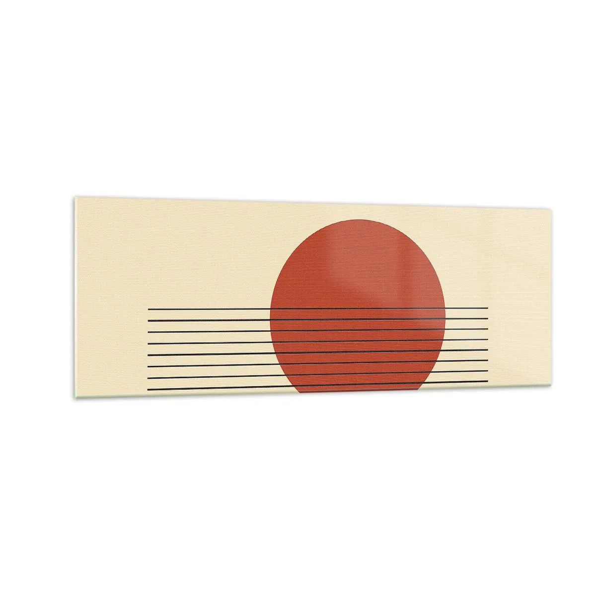 Obraz na szkle - Abstrakcyjny okrąg w czerwieni z liniami na beżowym tle - 140x50cm - W koło i dalej - Nowoczesna dekoracja ścienna do salonu i sypialni ARTTOR