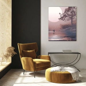Obraz na szkle - Magiczny krajobraz z drzewem, księżycem i postaciami - 50x70cm - Nocne dziwy - Nowoczesna dekoracja ścienna do salonu, kuchni i sypialni ARTTOR
