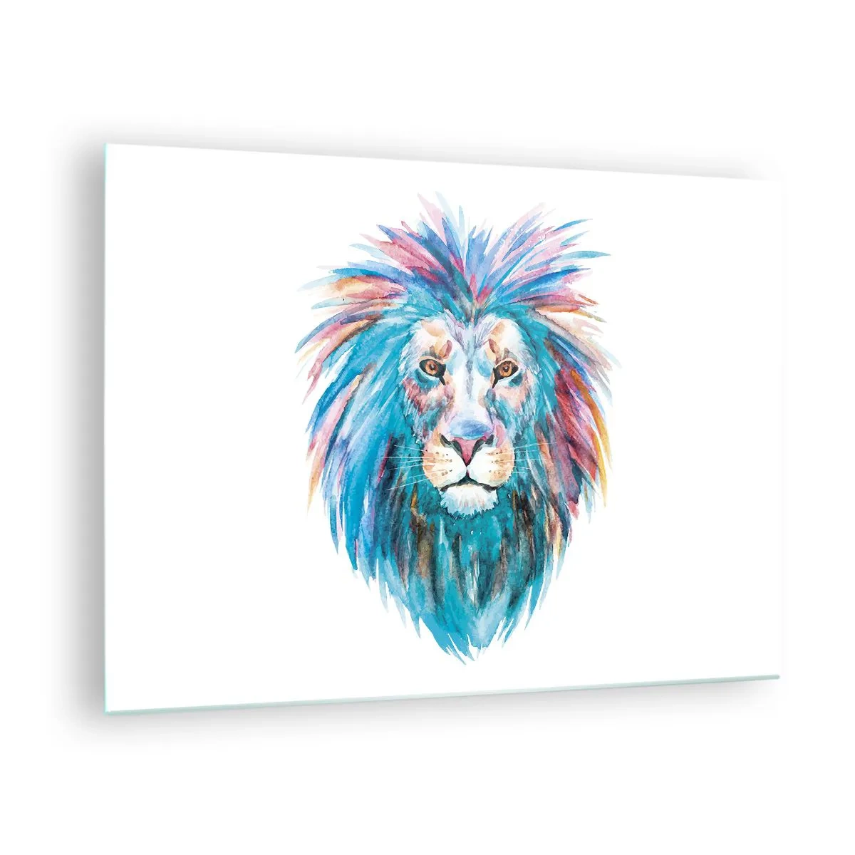 Obraz na szkle - Kolorowy portret lwa w artystycznym stylu - 70x50cm - Elektryzująca aura - Nowoczesna dekoracja ścienna do salonu i sypialni ARTTOR