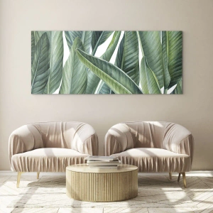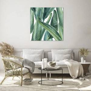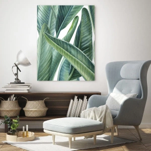 Obraz na szkle - Tropikalne liście w odcieniach zieleni - 50x70cm - Zieleń sama w sobie - Nowoczesna dekoracja ścienna do salonu, kuchni i sypialni ARTTOR