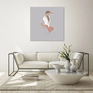 Obraz na szkle - Sylwetka kobiety w minimalistycznym stylu - 50x70cm - Zarys wdzięku - Nowoczesna dekoracja ścienna do salonu, kuchni i sypialni ARTTOR