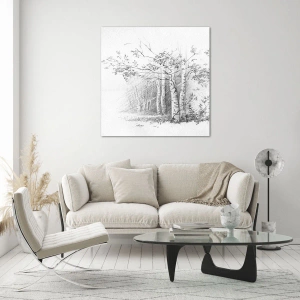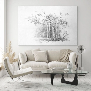 Obraz na szkle - Rysunek brzozowego lasu w subtelnym szkicu ołówkiem - 70x100cm - Światło brzozowego lasu - Nowoczesna dekoracja ścienna do salonu i sypialni ARTTOR