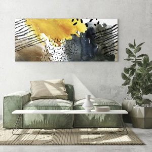 Obraz na szkle - Abstrakcyjna kompozycja z plamami i liniami w kolorach ziemi - 50x70cm - Spotkanie żywiołów - Nowoczesna dekoracja ścienna do salonu, kuchni i sypialni ARTTOR