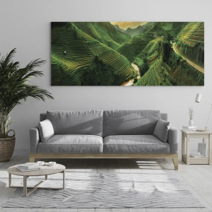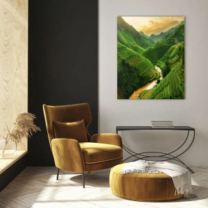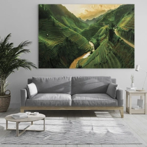 Obraz na szkle - Malownicze tarasy ryżowe w dolinie o zachodzie słońca - 120x80cm - Wietnamska dolina - Nowoczesna dekoracja ścienna do salonu, kuchni i sypialni ARTTOR