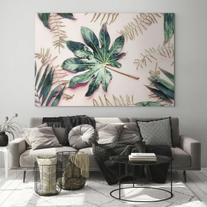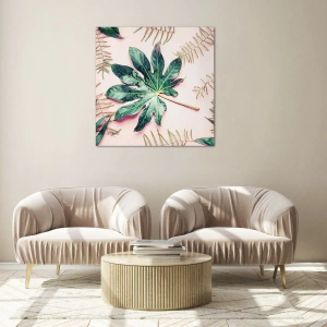 Obraz na szkle - Studium zieleni na różowym tle - 40x40 cm