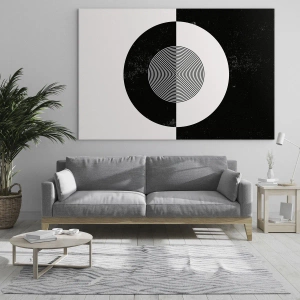 Obraz na szkle - Geometryczny wzór czarno-białej symetrii - 50x70cm - Harmonia w czerni i bieli - Nowoczesna dekoracja ścienna do salonu, kuchni i sypialni ARTTOR