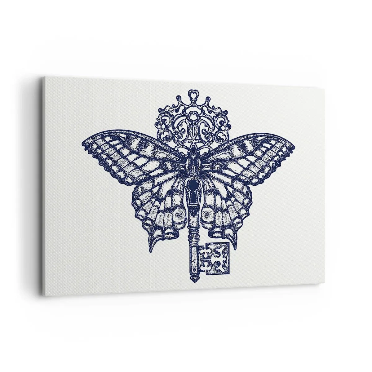 Obraz na płótnie - Stylowa grafika motyla z kluczem w minimalistycznym stylu - 100x70cm - Wszystkie tajemnice serca - Nowoczesna dekoracja ścienna do salonu, kuchni i sypialni ARTTOR