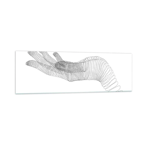 Obraz na szkle - Minimalistyczna ilustracja dłoni stworzona z czarnych kropek na białym tle - 160x50cm - Sprężysta dłoń - Nowoczesna dekoracja ścienna do salonu i sypialni ARTTOR