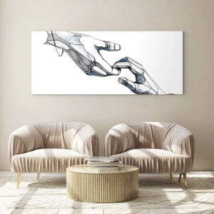 Obraz na szkle - Artystyczne przedstawienie dłoni w minimalistycznej i geometrycznej formie - 140x50cm - Dobry gest - Nowoczesna dekoracja ścienna do salonu i sypialni ARTTOR