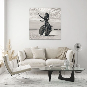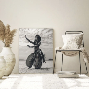 Obraz na szkle - Egzotyczna tancerka na pustynnym tle - 80x120cm - Taniec południowych wysp - Nowoczesna dekoracja ścienna do salonu i sypialni ARTTOR