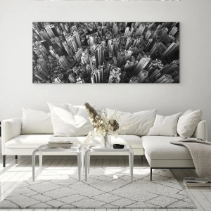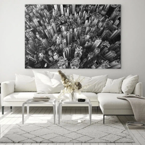 Obraz na szkle - Czarno-biała panorama miasta z lotu ptaka - 50x70cm - Wciąż wyżej i wyżej - Nowoczesna dekoracja ścienna do salonu, kuchni i sypialni ARTTOR
