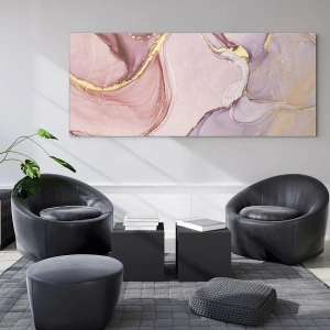 Obraz na szkle - Abstrakcyjna kompozycja w odcieniach różu i złota - 50x70cm - Pieszczota barw - Nowoczesna dekoracja ścienna do salonu, kuchni i sypialni ARTTOR