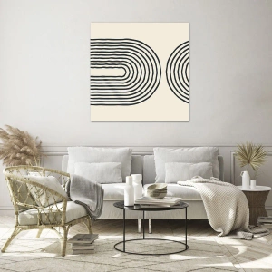 Obraz na szkle - Abstrakcyjny obraz w czerni i bieli przedstawiający linie w kształcie łuków - 50x70cm - Już za chwilę… - Nowoczesna dekoracja ścienna do salonu, kuchni i sypialni ARTTOR