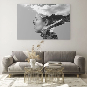 Obraz na szkle 'Portret górny i chmurny' to wyjątkowa kompozycja, w której wykorzystano technikę podwójnej ekspozycji. Połączenie ludzkiej sylwetki z majestatycznym krajobrazem górskim i chmurami tworzy surrealistyczny efekt, który przyciąga uwagę. To dzieło sztuki, które pozwala na odkrywanie nowych perspektyw i zachęca do refleksji nad związkiem człowieka z naturą. W czarno-białej tonacji obraz nabiera jeszcze głębszego wyrazu, podkreślając siłę emocji i przekazu artystycznego.