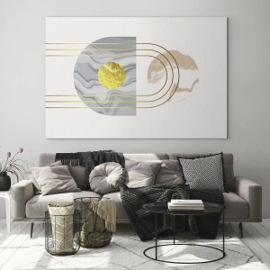 Obraz na szkle - Abstrakcyjny obraz w złocie i szarościach - 50x70cm - Jasność i blask - Nowoczesna dekoracja ścienna do salonu, kuchni i sypialni ARTTOR