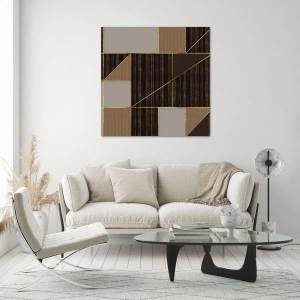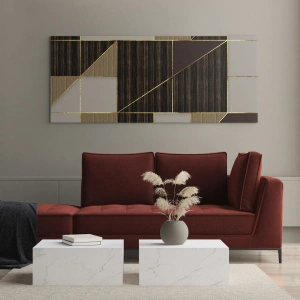 Obraz na szkle - Geometryczne wzory w odcieniach brązu ze złotymi liniami - 120x50cm - Mozaika brązów i złota - Nowoczesna dekoracja ścienna do salonu i sypialni ARTTOR