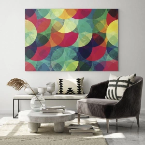 Obraz na szkle - Kolorowe geometryczne wzory złożone z kół i półkoli - 120x50cm - Wtęczowstąpienie - Nowoczesna dekoracja ścienna do salonu i sypialni ARTTOR
