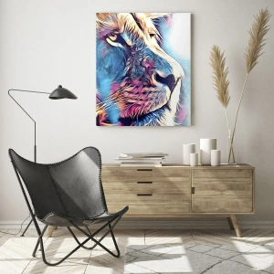 Obraz na szkle - Kolorowa grafika lwa w nowoczesnym, artystycznym stylu - 100x70cm - Mądrość natury - Nowoczesna dekoracja ścienna do salonu, kuchni i sypialni ARTTOR